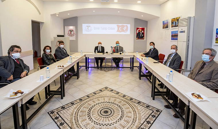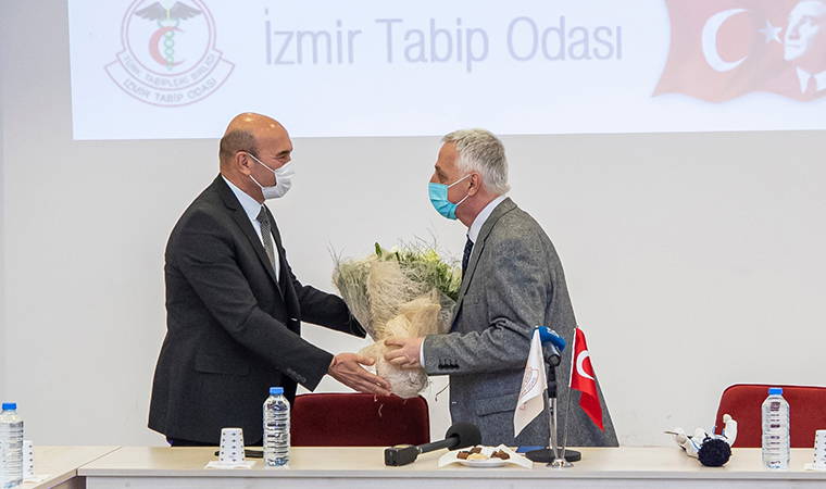 İzmir Tabip Odası Başkanı Op. Dr. Lütfi Çamlı ise şöyle konuştu: “Pandemi süresince ne yazık ki bizlerin talep ettiği gibi bir pandemi yönetimi olmadı. Şeffaf bir süreç götürülmedi. Bu süreçte Türk Tabipler Birliği, Tabip Odaları başta olmak üzere sağlık örgütleri bu sürecin dışında tutulmaya çalışıldı. Ama gerek Türk Tabipler Birliği gerekse İzmir Tabip Odası bu süreçte toplum sağlığını önceleyerek, halkın sağlık hakkını savunmak adına doğruları söyledi. Savunurken de zaman zaman hedef haline getirildiler. Biz bu süreci dayanışmayla, İzmir’deki tüm toplum sağlığını öncüleyen yapılarla aşmaya çalıştık. Süreçte İzmir Büyükşehir Belediyesi’nin çok büyük desteğini gördük. Gerek kişisel koruyucu ekipmanlarımızın temininde, gerek sağlık çalışanlarının barınma ve ulaş ım sorunlarının çözümünde, daha birçok sorunda İzmir Büyükşehir Belediyesi, Karşıyaka Belediyesi, Konak Belediyesi yanımızda oldu. Dayanışma bizleri gerçekten çok mutlu etti. Ne yazık ki 387 sağlık emekçisini kaybettik. Zor günlerin dayanışmayla aşılacağına inanıyoruz.”
