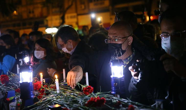 İzmir Barosu öncülüğünde, yıkılan Rızabey Apartmanı enkazı önünde düzenlenen anma töreninde, depremde yaşamını yitirenler için karanfil bırakıldı, mum yakıldı.
