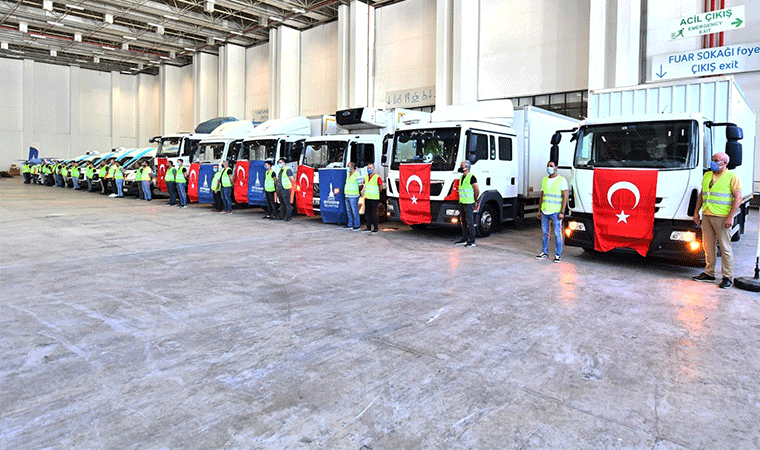 İzmir Büyükşehir Belediyesi yangınla mücadele eden Muğla’nın Bodrum ve Milas, Antalya’nın Manavgat, Aydın’ın Nazilli ilçelerine ve Denizli’ye destek vermeye devam ediyor. Portatif yataktan gıda paketine kadar pek çok ihtiyaç malzemesinin bulunduğu 15 araç, 38 personel yola çıktı. İzmir Büyükşehir Belediye Başkanı Tunç Soyer, “Dayanışmayla aşamayacağımız engel, çözemeyeceğimiz sorun yok. Bu zorlu günleri yine dayanışmayla atlatacağız, yaralarımızı birlikte saracağız” dedi.