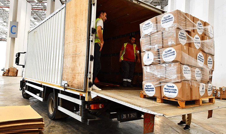 Böylelikle İzmir Büyükşehir Belediyesi Artvin, Adana, Muğla ve Antalya’ya toplam 77 ton malzeme göndermiş oldu.