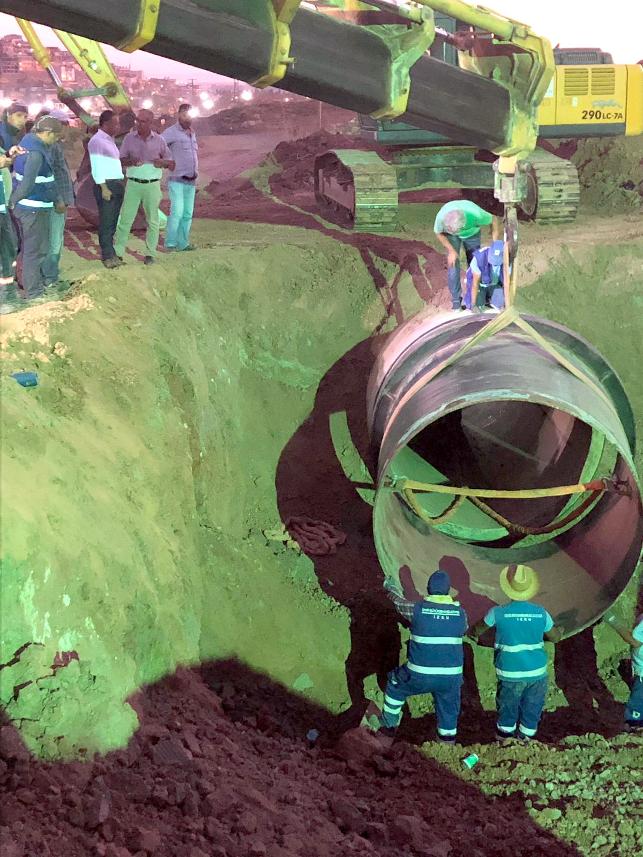 Menemen Koyundere Kavşağı ile Yahşelli’de dört ayrı noktada döşenen 2 metre 20 santim çapındaki yeni boruların ana isale hattına bağlantısı için 20 Ağustos’ta hattaki su kesilerek çalışmalara başlandı. Bağlantı çalışmalarının kısa sürede tamamlanması için İZSU çalışmalarına 37 kaynakçı, 50 işçi, 10 adet paletli kırıcı ve kazıcı iş makinesi, 4 adet 100 tonluk vinç ile gece boyunca da devam ediyor. Eski borularla yeni boruları birleştiren İZSU, kaynak çalışmalarının büyük ölçüde tamamlandığını belirtti. İZSU Genel Müdürlüğü yetkilileri, çelik boruların alttan desteklenmesi için zemine ayrıca beton dolgu yapılacağını ve ardından hafriyatın kapatılarak hatta su verileceğini de açıkladı.