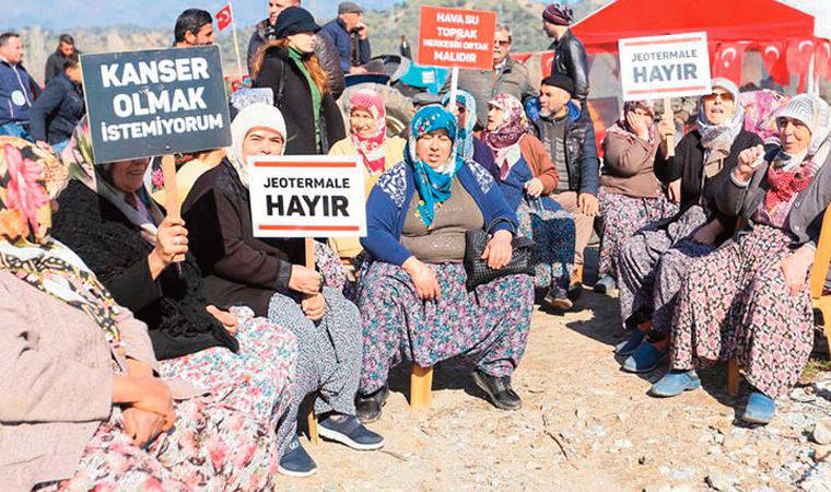 Jeotermal Enerji Santralları’na karşı Aydınlıların mu¨cadelesi yıllardır devam ediyor. Çevre, doğa ve insanları zehirlediğini savunan köylu¨ler her defasında sokaklara inerek eylem yapıyor, JES’e karşı olduklarını bildiriyor. Köylu¨lerin ve çevrecilerin hukuki mu¨cadelesi devam ederken, her defasında “Çevresel Etki Değerlendirme Raporu (ÇED) gerekli değildir” izni ile JES’ler çalışmalarını su¨rdu¨ru¨yor.