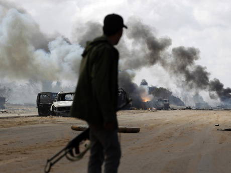 Libya'ya yönelik operasyonda bugün Bingazi yakınında onlarca askeri aracın tahrip edildiği bildirildi. Bölgedeki AFP muhabirinin bildirdiğine göre, Libya lideri Muammer Kaddafi'ye bağlı güçlere ait, aralarında tankların da bulunduğu araçlar, Bingazi'nin batısında bu sabah bombardımana maruz kaldı. Bingazi'nin 35 kilometre batısına düşen bölgede tahrip edilen tanklar, yanmış toplar ve paralı askerlerin cesetlerinin görüldüğü ifade edildi. Libya'daki muhalif kaynaklar, Fransız uçaklarının bu bölgedeki bombardımanının yaklaşık iki saat sürdüğünü söylediler.