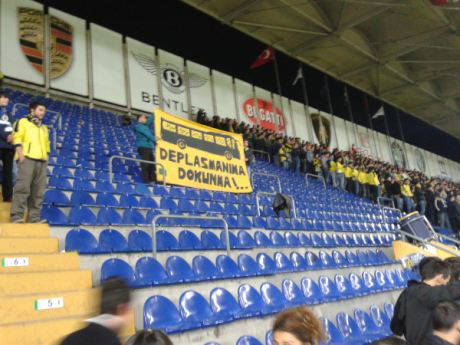 Bu taraftar gruplarının bulunduğu bölümler 10 dakika süreyle boş kalırken, açılan ''Deplasmanıma dokunma'' pankartlarıyla, alınan bu karara tepki dile getirildi.
