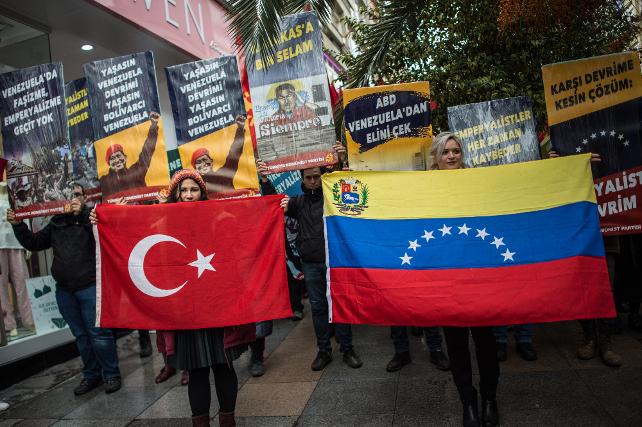 Türkiye Komünist Partisi (TKP) üyeleri, Kadıköy'de Venezüella'ya halkıyla dayanışma amacıyla yürüyüş yaptı. Eyleme, Venezuela'nın Ankara Büyükelçisi Jose Gregorio Bracho Reyes da katıldı.