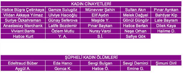 Raporda, öldürülen kadınların isimleri de yer aldı: