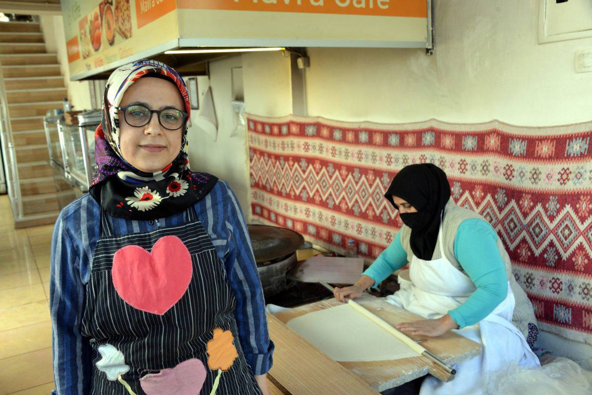 Borsa Caddesi'nde ev ekonomisine katkı sağlamak için 6 yıl önce kafe açan 2 çocuk annesi Sevim Karadaş, burada gözleme ve bazlama yapmaya başladı.