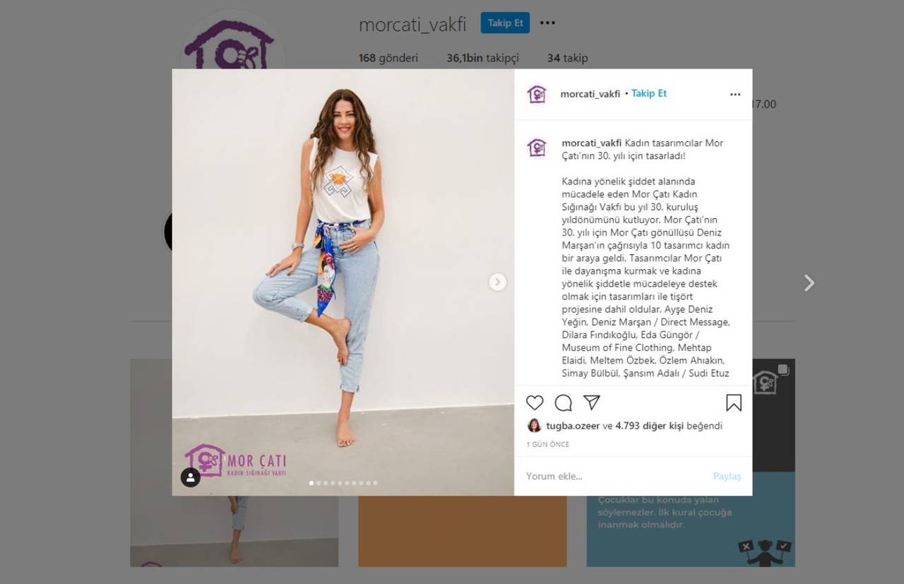 Tasarımcılar Ayşe Deniz Yeğin, Deniz Marşan (Direct Message), Dilara Fındıkoğlu, Eda Güngör (Museum of Fine Clothing), Mehtap Elaidi, Meltem Özbek, Özlem Ahıakın, Simay Bülbül, Şansım Adalı (Sudi Etuz) ve Zeynep Tosun, Mor Çatı ile dayanışma kurmak ve kadına yönelik şiddetle mücadeleye destek olmak için on farklı tişört üretti.