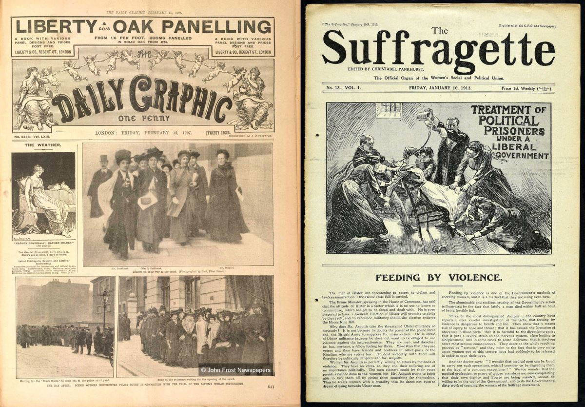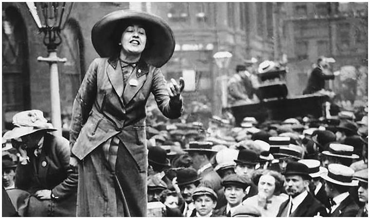Christabel Pankhurst ile birlikte Kadınların Toplumsal ve Siyasal Birliği’nin kurucusu olan ünlü feminist Emmeline Pankhurst’ün (1858-1928); 1914 yılında, yirmi bin süfrajetin katıldığı bir protesto eyleminde yaka paça tutuklanması buna önemli bir örnek.