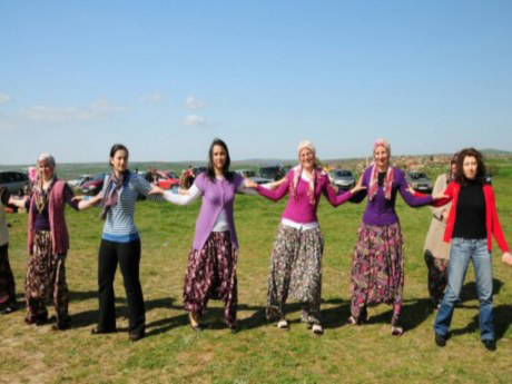 Köyün ilk kurulduğu yıllardan bu yana kutlanan bahar (nevruz) şenliği için günler öncesinden diktirdikleri şalvarlar, ördükleri yelekler ve oyaladıkları çemberleri takan kadınlar, nisan ayının en sıcak gününde köy merasında bir araya geldi.