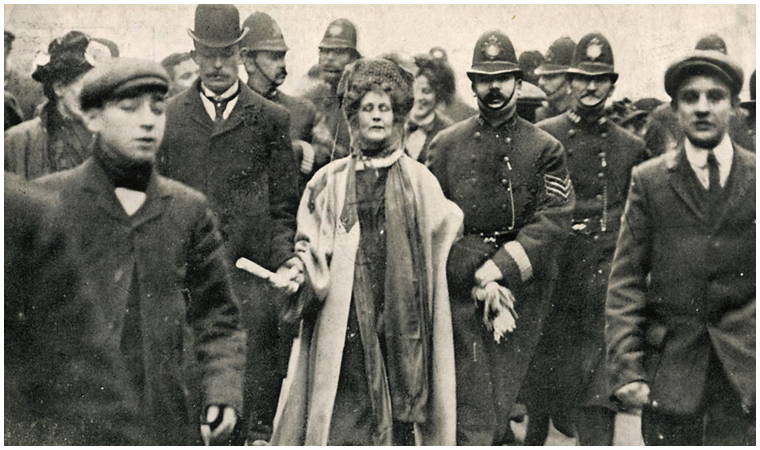 Christabel Pankhurst ile birlikte Kadınların Toplumsal ve Siyasal Birliği’nin kurucusu olan ünlü feminist Emmeline Pankhurst’ün (1858-1928); 1914 yılında, yirmi bin süfrajetin katıldığı bir protesto eyleminde yaka paça tutuklanması buna önemli bir örnek.