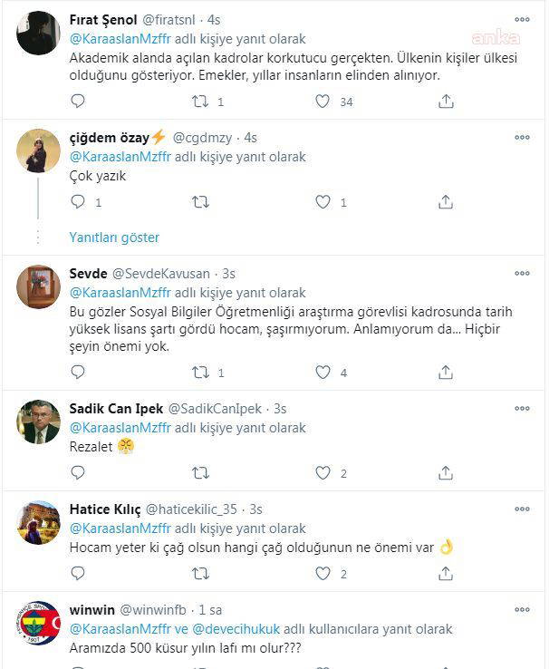 “Akademik alanda açılan kadrolar korkutucu gerçekten. Ülkenin kişiler ülkesi olduğunu gösteriyor. Emekler, yıllar insanların elinden alınıyor.”