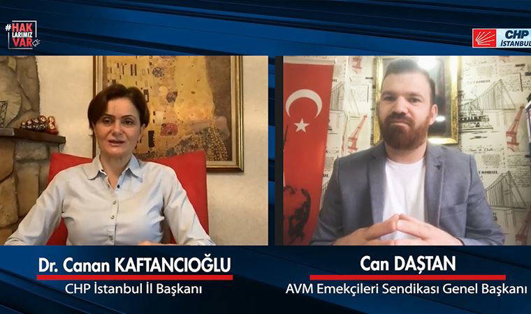 Cumhuriyet Halk Partisi (CHP) İstanbul İl Başkanı Dr. Canan Kaftancıoğlu, AVM Emekçileri Sendikası Genel Başkanı Can Daştan ile video konferans yoluyla bir görüşme gerçekleştirdi. Düşük ücretler ve uzun çalışma saatleriyle güvencesiz şartlarda çalışmaya mecbur bırakılan AVM çalışanlarının sorunlarını ve taleplerini dinleyen Kaftancıoğlu, “AVM’lerde çalışan ve bu süreçte haksızlığa, hukuksuzluğa uğrayan tüm işçilere her türlü hukuki desteği vermeye hazırız. Bugün çalışanların “Evde kalırsam virüsten değil ama açlıktan öleceğim” dediği günleri yaşıyoruz. Genel Başkanımızın da söylediği gibi ‘Evde kal’ demekle değil, vatandaşlarımızı evde tutabilme koşullarını oluşturarak bu karanlık günlerden kurtulabiliriz” dedi.