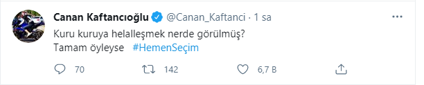 "Kuru kuruya helalleşmek nerde görülmüş?" diye soran CHP İl Başkanı Canan Kaftancıoğlu, "Tamam öyleyse hemen seçim" ifadelerini kullandı.