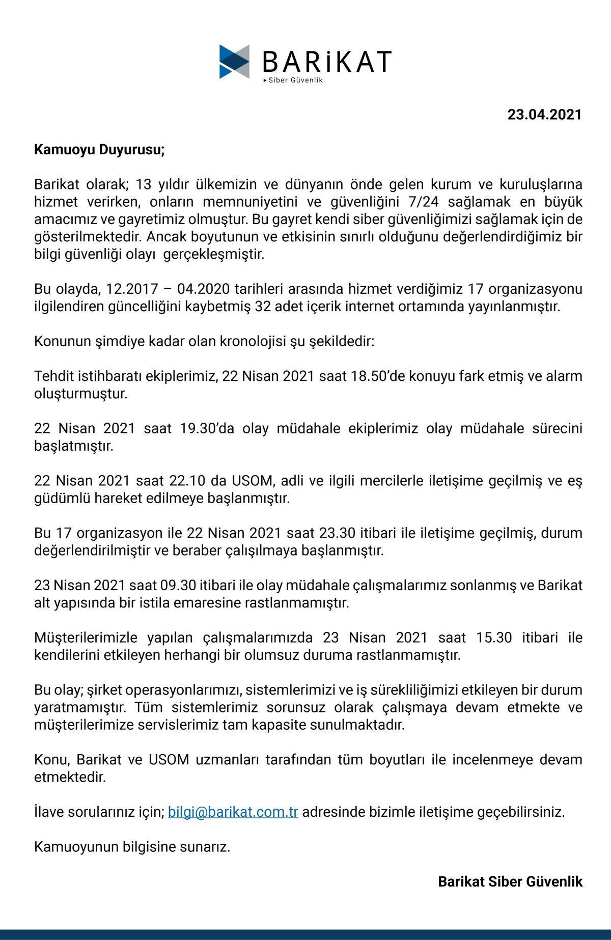 Barikat adlı siber güvenlik firmasının açıklaması şöyle: