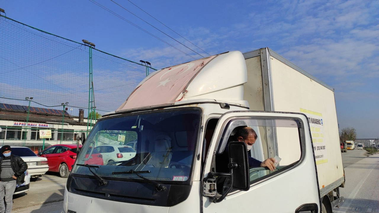 Düzce’de İl Emniyet Müdürlüğü Trafik Şubesi ekipleri, Öztürkler kavşağında uygulama yaptı. Uygulama sırasında polis ekipleri, Rıdvan Mutlu yönetimindeki kamyonetin tavanının üstünde yıpranmış, yırtılmış ve rengi solmuş Türk bayrağını fark etti.