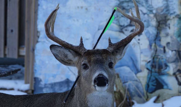 Kanada’nın Ontario eyaletinde kafasının ortasında ok olmasına rağmen yaşamını sürdüren bir geyik görüntülendi.