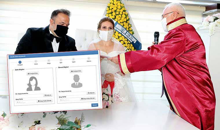 Evlenmek isteyen çiftler, TC kimlik numaraları ve telefon numaralarını girerek kendilerine sistem üzerinden gönderilen doğrulama koduyla işleme başlıyor. Nikâh günü, saati ve nikâh yerini seçtikten sonra ödemesi gereken ücreti kredi kartıyla yatırabiliyorlar.