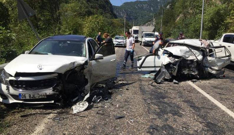 Kaza, saat 13.30 sıralarında Karabük -Zonguldak Yolu Gökbel Köyü yakınlarında meydana geldi. Zonguldak yönüne giden Erdal Korkmaz(42) idaresindeki 67 LP 851 plakalı otomobil, karşı yönden gelen ve açık soyadı öğrenilemeyen Erol Ş.'nin kullandığı 06 BJL 755 plakalı otomobil ile çarpıştı. Kaza yapan otomobillere Fuat Kurnalı'nın yönetimindeki 67 NN 507 plakalı hafif ticari araç da çarptı. Kurnalı'nın aracı yoldan çıkarak, çalılık alana savruldu.