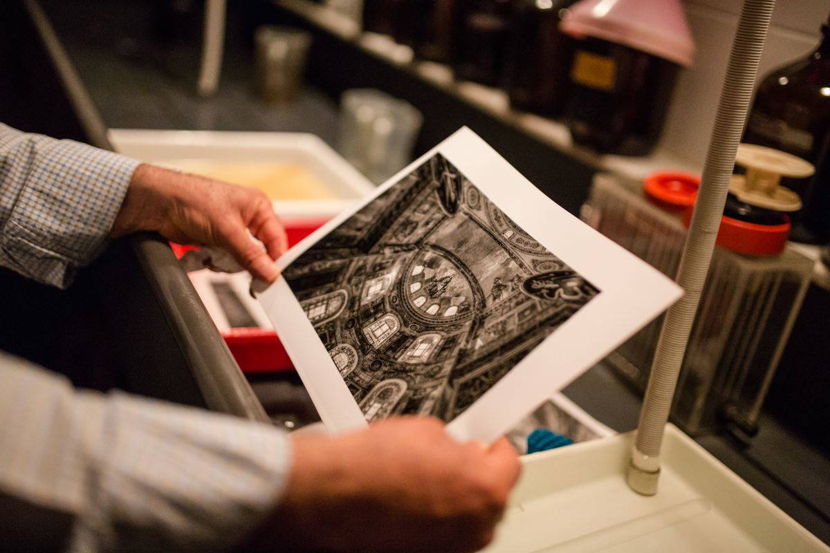 Fotoğraf çekmeye ortaokul yıllarında eline geçen Kodak marka bir makineyle başlayan Tahsin Aydoğmuş, uzun yıllardır baskı için kendi karanlık odasını kullanıyor. Eğer özel bir merakınız yoksa, benim gibi 20’lerinin sonunda olanlar için pek de aşina olunan bir yöntem değil. Çoğumuz dijital teknolojilerin sağladığı kolaylıkla öğrendik fotoğraf çekmeyi. Ama bir filmin banyodan geçtiği bütün aşamaları görmek; doğru renk tonları yakalanamadığında sabırla, tekrar tekrar denemek; kendi ellerinle bastığın fotoğrafa heyecanla bakabilmek inanılmaz tatmin edici bir deneyim, Tahsin Bey sayesinde öğrendim. Bilenlerin sayısının gittikçe azaldığı, zaman, emek ve elbette maddi olanaklar gerektiren karanlık oda yöntemini kullanmayı ısrarla sürdüren Aydoğmuş’la fotoğrafçılık hikâyesini, karanlık odaya olan bağlılığını konuştuk, üstüne bir de fotoğraf bastık.