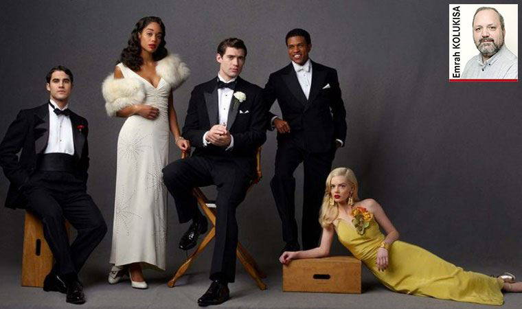 Film içinde film (tüm Hollywood hikâyelerinin kaçınılmaz kaderi de bu galiba, film içinde film klişesi, ki güzel işlendiğinde müthiş sonuçlar verdiği de olmuştur) yapısına yaslanan dizide siyahi eşcinsel senarist Archie’nin yazdığı senaryo gerçek bir olayı anlatıyor; Peg Enstwistle’ın o ünlü devasa Hollywood yazısının ‘H’ harfinden atlayarak intihar edişini. Archie’nin senaryosunu genç yönetmen adayı Raymond okur ve beğenir, ardından da Ace Stüdyoları’nın yöneticisi Dick Samuels’ı ikna ederek oyuncu arayışlarına başlar. Hollywood’daki tüm genç oyuncuların deneme çekimi için sıraya girdikleri filmin hikâyesini değiştirmeye karar verdikleri andan itibaren de tüm dizinin akışı farklı bir yol almaya başlar ve başta da sözünü ettiğim alternatif tarih yazımı devreye girer. Yeni senaryoya göre Peg yerine Meg gelir (siyahi bir oyuncudur artık) ve intihar meselesi de yeniden tartışmaya açılır (bu tartışmaların nasıl sonlandığını söylemeyeceğim, izlediğinizde görmeniz daha hayırlı, herhalde). Uzatmayalım, bir çok düğümün mutlu sonla çözüldüğü dizi görkemli ve inanması güç bir Oscar töreniyle finale erer ve bizden de örneğin siyahi bir kadın oyuncunun En iyi Kadın Oyuncu Oscar’ını alması için 75 yıl beklenmesi gerektiğini (ki aynı kategoride hâlâ ikinci bir ödül gelmedi) unutmamız beklenir.