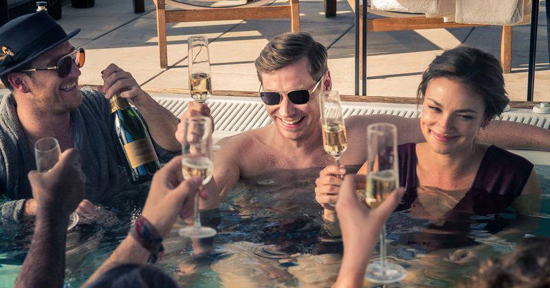 “Betonrausch” (dilimize “Beton Sarhoşluğu” diye çevirmek mümkün) gerçek bir öyküden uyarlanmış ve odağında da hayatındaki en büyük amacı kısa yoldan zengin olup çocukluğunda yaşadığı yoksulluğun intikamını almak olan Viktor Steiner (David Kross) adında bir dolandırıcı var. Hapse atıldıktan sonra (film gösterişli bir partinin ardından sabaha karşı gelen bir polis baskınıyla açılıyor) bir gazeteciye hayat öyküsünü anlatırken dolandırdığı insanlar hakkında “Hepsinin ortak bir özelliği vardı; açgözlüydüler” diyen Viktor’a filmde en az onun kadar üçkağıtçı bir adam olan Gerry (Frederick Lau) ile çekici bankacı Nicole da (Janina Uhse) eşlik ediyor ama bütüncül bir bakış açısıyla bakarsak anlatılan Viktor’un hayatı aslında. Sahte bir belge düzenleyerek pahalı bir evi kiralayan sonra da bunu kaçak işçilere toplu olarak kiralayarak önemli bir kâr elde eden Viktor kolay paranın tadını aldıktan sonra tüm ‘iş’ planlarını üçkağıt üzerinden kurgulamaya başlar ve ilk işinde tesadüfen tanıştığı Gerry ile ortak olarak ufkunu ve iş alanını genişletir. İkisini de ummadıkları kadar yükseğe çıkaran ise emlak dolandırıcılığında kredi almak için çalıştıkları bankada önemli bir pozisyonda olan Nicole olacaktır. Film bir yandan bu üçlü ekibin dolandırıcılık maceralarını anlatırken bir yandan da Viktor’un geçmişe dair çözmeye uğraştığı ailevi meselelerine odaklanıyor. Karakterin ahlaki çürümüşlüğü üzerinden bir nutuk çekmeye çalışmaması ise, garip bir şekilde, filmin pozitif yanlarından biri.