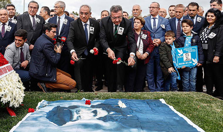 Devlet Mezarlığı’ndaki törene, DSP Genel Başkanı Önder Aksakal, CHP Genel Başkan Yardımcıları Seyit Torun ve Yıldırım Kaya, CHP Genel Başkanı Kemal Kılıçdaroğlu’nun Başdanışmanı ve İstanbul Milletvekili Erdoğan Toprak, CHP Grup Başkanvekili Engin Altay, CHP Ankara Milletvekili Gamze Taşçıer, DSP Parti Meclisi üyeleri ve çok sayıda partili katıldı. Ecevit’in gömütüne çelenk bırakılmasının ardından konuşan Aksakal, Ecevit’in ezen ve ezilenin olmadığı, çokça üretip hakça paylaşılan insanca-hakça bir düzende, tam bağımsız Türkiye’nin yaratılması ve sonsuza kadar yaşatılmasını hedeflediğini belirtti. Aksakal, Ecevit’in bu uğurda emperyalist politikalara karşı adeta göğsünü siper ettiğini söyleyerek, “Ecevit, Atatürk ilke ve devrimlerinin yılmaz bekçisi, gerçek bir cumhuriyetçi, gerçek bir halkçı, milliyetçi, devletçi, laiklik ilkesine inançlara saygı kavramını yükleyen gerçek bir devrimciydi” dedi. l