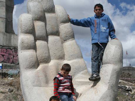 Gün 23 Nisan, çocuk bayramı… Heykelin çevresinde konuşlanan çocuklardan biri bize “Ucube”nin “tarih”ini anlatıyor… Büyük bir ciddiyetle bir turiste anlatır gibi söze şöyle başlıyor: “Kars Kalesi’nin karşısında, Kars Çayı’nı da man zarasına alan kayalığın üzerinden yükselen bu heykelin adı ‘İnsanlık Anıtı’ydı, ama artık adına ‘ucube’ deniliyor. Bu ‘ucube’ barış ve özgürlüğü simgeliyor…”