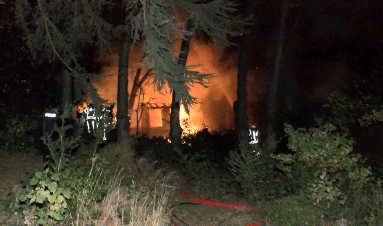 Kartal'da ormanlık bölgedeki ahşap baraka alev alev yandı