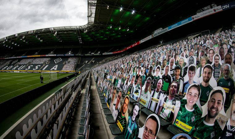 Koronavirüs salgını nedeniyle seyircisiz olarak oynanan Borussia Mönchengladbach - Bayer Leverkusen karşılaşmasında ev sahibi ekibin yönetimi, taraftarlar için büyük bir jeste imza attı. Belli bir ücret ödeyen yaklaşık 13 bin taraftarın, tribünlere kartondan fotoğrafı yerleştirildi.