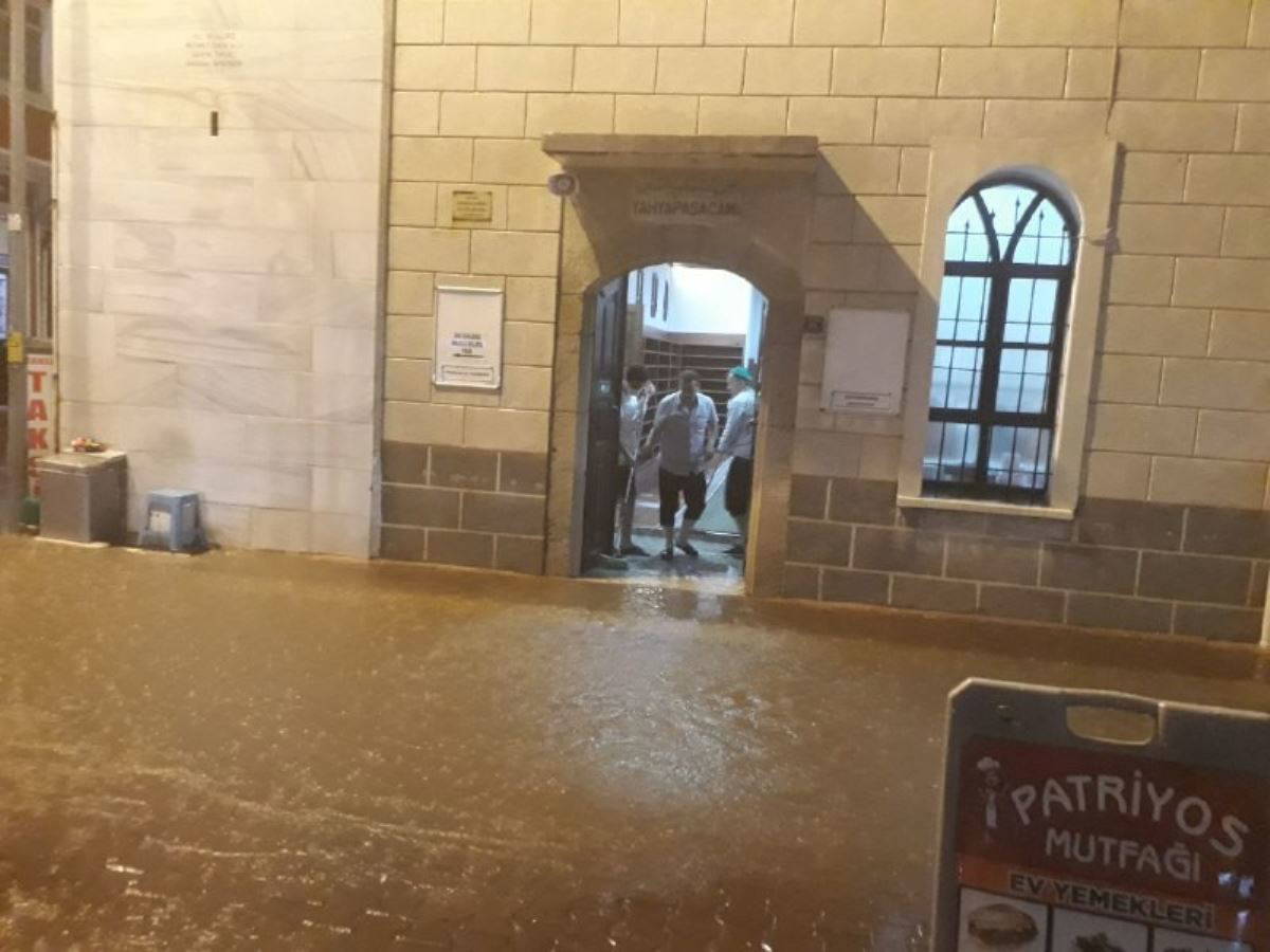 Sel felaketinin izlerini silmeye çalışan Kastamonu’da sağanak etkili oldu, cami ve iş yerlerini su bastı!