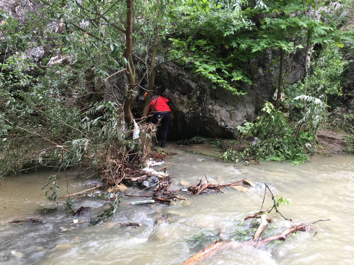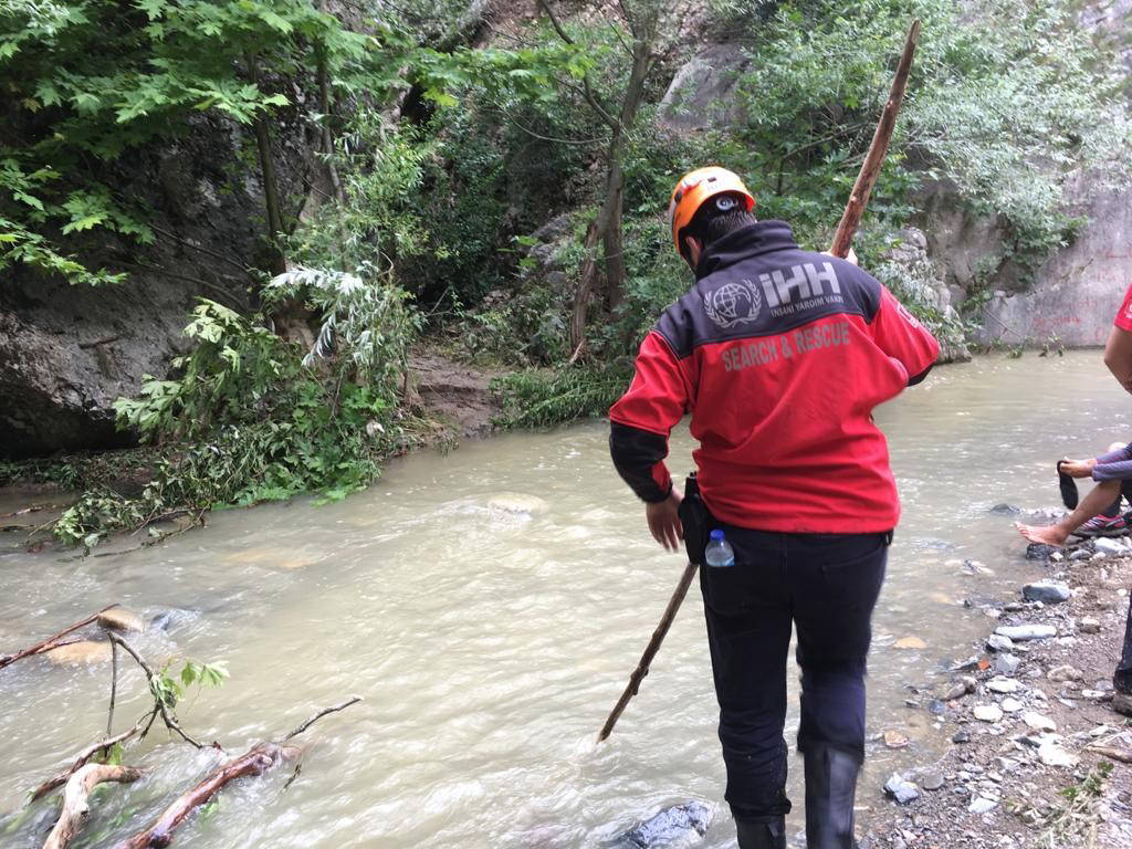 Aramalara, ailenin hobi bahçesi olarak kullandığı ve sele kapıldıkları evin bulunduğu yerin yakınlarından başlandı. Jandarma arama kurtarma ekipleri, bağ evinin yanından aşağıya doğru araziyi tarayacak. Görevliler ellerinde demir çubuk ve sopalarla suda arama gerçekleştiriyorlar.