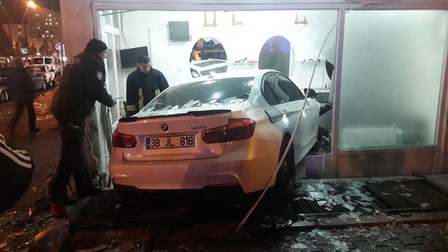 Kaza, dün akşam merkez Melikgazi ilçesi Mustafakemalpaşa Bulvarı Molla Sokak'ta meydana geldi. Selçuk Teryakio yönetimindeki 38 JL 818 plakalı otomobil, sürücüsünün kontrolünden çıkıp, kapalı bulunan erkek kuaförüne girdi. Teryakio'nun şans eseri yara almadan kurtulduğu kazada, kuaför salonunda ve araçta maddi hasar oluştu.