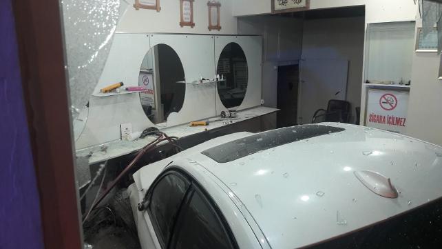 KAYSERİ'de kontrolden çıkan otomobil kapalı bulunan erkek kuaförüne girdi.