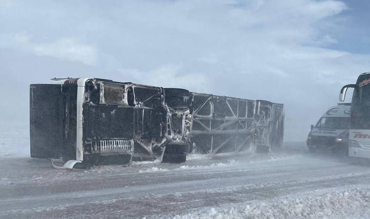 Kayseri'de yolcu otobüsü devrildi, çok sayıda yaralı var