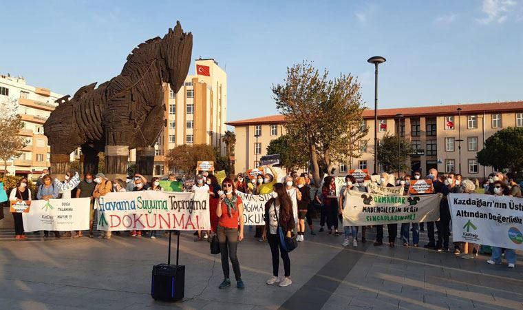 “Kaz Dağları’nın üstü altından değerlidir”, “Havama, suyuma, toprağıma dokunma” pankartlarının açıldığı eylemde konuşan Ekoloji Birliği Eşsözcüsü Süheyla Doğan, “Bu karar, Kaz Dağları’nı elini kolunu sallayarak delik deşik etmesine izin vermediğimiz Alamos içindir. Halilağa’da halkın katılımı toplantısını keyiflerince yaptırmadığımız Cengiz içindir. Bu tahliye, ‘Siz rahat olun, biz sizin yanınızdayız’ demek içindir” ifadelerini kullandı.