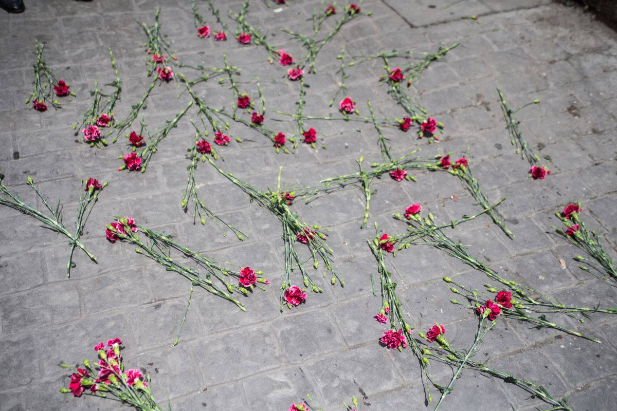 TKH üyeleri, basın açıklamasının ardından Kazancı Yokuşu başına karanfillerini bıraktı.