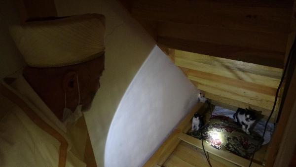 Harun Özdemir kedileri ve 2 yavrusunu sokağa atmaya kıyamadığını belirterek, "Cami havalansın diye pencerelerden birisini açık bırakıyorum. Şüphelendim hayvandan, cemaat dağılınca ben kolladım kediyi. Baktım kedi minberin altına girdi. Minberin altına girdikten sonra, odamdan el fenerini aldım. Hayvan burada yavrulamış. Hayvanlara karşı da bir sevgi var bizde. Bu nedenle kıyamadım hayvana. Biraz daha büyüyünce salıvereceğiz inşallah veya belediyeye de haber verdim gelin alın diye. Belediyeden haber bekliyoruz. Peygamber efendimizin hayvanlara karşı sevgisi olduğunu biliyorum. Peygamber efendimiz de hayvan sevgisinden daima bahsetmiştir. O yüzden hayvanları korumak zorundayız dinen” dedi.