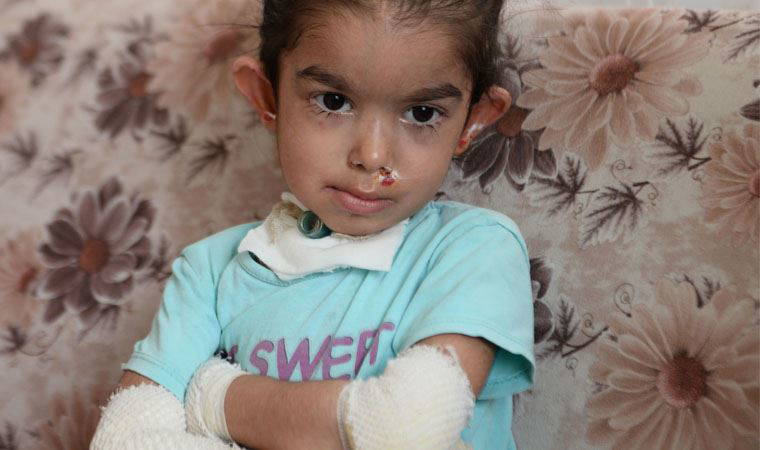 Yaklaşık 4 yıldır hastanede tedavi gören küçük Büşra, nefes almakta zorlanınca boğazı delindi. Açılan delikten nefes alan ve buradan beslenen Büşra'nın babası İsmail Aslan, "Kızım nefes almakta zorlanıyor. Her gün acılar içinde kıvranıyor" dedi.