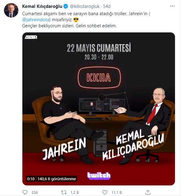 Ünlü Twitch yayıncısı Jahrein,Twitter hesabından Kemal Kılıçdaroğlu'nun gençlere seslendiği video mesajı alıntılayıp "Allah aşkına nasıl yapacaksınız bu dediklerinizi?" sorusunu yöneltmiş ve "2018 seçim bildirgenizi okudum şimdi. Bana hiç yeterli gelmedi. Nolur birileri çıkıp artık bu gençlik için ayakları yere basan sağlam bir plan açıklasın!" demişti.