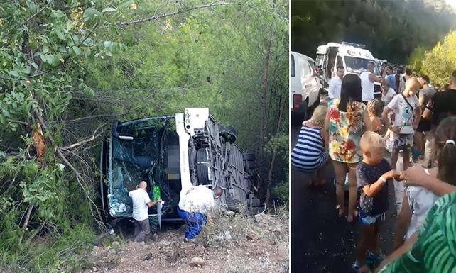 Kemer'de tur otobüsü şarampole yuvarlandı: 2'si ağır 41 yaralı