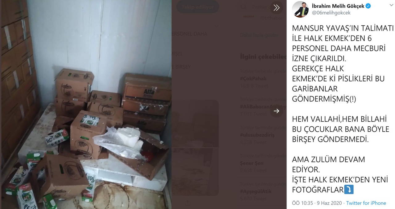 “Melih Gökçek’in yıllarca siyasi danışmanlığını yapan Ahmet Sarıduman, Halk Ekmek Genel Müdürlüğü görevinden ancak 20 Ağustos 2019’da ayrılabildi. Fotoğraflarda görülen süt markası da fabrikamıza en son onun döneminde alınmıştı. Burada Ankaralıları yine aldatmaya yönelik paylaşım yapılıyor. Ama çamur yine eline bulaşmış, daha önce birçok kez olduğu gibi yine faka basmış. Halk Ekmek Fabrikası, Başkanımız Mansur Yavaş döneminde, uluslararası tüm hijyen kurallarına uygun olarak sağlıklı ve uygun fiyatlı ekmek üretmeye devam etmektedir. Ekmeğimizi tüm Ankaralılar güven içerisinde tüketebilirler.”