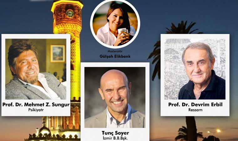 İzmir Büyükşehir Belediye Başkanı Tunç Soyer, psikiyatr Prof. Dr. Mehmet Sungur ve ressam Prof. Dr. Devrim Erbil’in konuk olacağı söyleşide, kentleri güzelleştirirken konforlu, kullanışlı ve ekolojik olarak nasıl daha zararsız hale getirileceği tartışılacak. Etkinlik,12 Mart Perşembe günü Mövenpic Otel’de saat 19.30’da başlayacak.