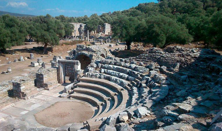 İassos isminin anlamı, “toprak ana şehri” imiş. Liman kenti. Agora, tiyatro, tapınaklar, neredeyse tüm şehri görmek, hissetmek hala mümkün. Şehir ilk kurulduğunda, bölgenin bir ada olduğu yönünde güçlü kanıtlar var. Milattan önce 2900 yılından bahsediyoruz kabaca. Zamanla ana kara ve ada arasındaki en sığ geçite sürüklenen kum, alüvyon ve çakıllarla, bu ada kenti, ana karayla, yani kutsal Anadolu topraklarıyla birleşmiş. Sonrasında ticaret biraz daha gelişmiş. Halkının okumaya, eğitime çok düşkün olduğu, yerleşik bir halk olduğu sanılıyor. Mezarlıklar, yağhaneler, okulların kaıntıları, bize bugün ne hikayeler anlatıyor.
