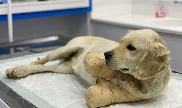 Yaralı köpek, HAYTAP'ın desteği ile özel hayvan kliniğinde tedavi edildi. Aşırı kan kaybına rağmen Pamuk, hayati tehlikeyi atlattı.