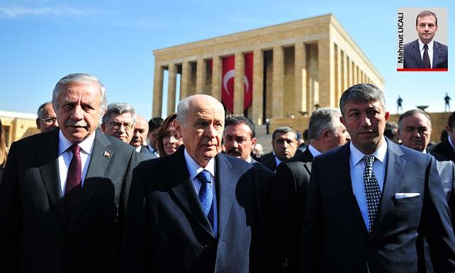 Edinilen bilgiye göre CHP lideri Kılıçdaroğlu Anıtkabir’deki törenden ayrılırken MHP Genel Başkanı Devlet Bahçeli ve beraberindeki heyetle karşılaştı. CHP lideri Kılıçdaroğlu’nun MHP lideri Bahçeli ile tokalaştığı ancak her iki liderin de herhangi bir konuşma yapmadığı belirtildi. Kılıçdaroğlu’nun MHP heyetinde yer alan milletvekilleriyle tokalaştığı belirtildi.