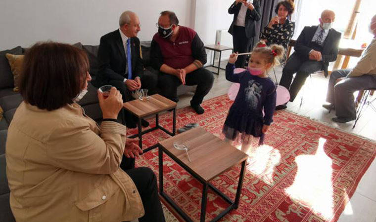 İzmir programı kapsamında Büyükşehir Belediyesi Uzundere Konutlarında kalan depremzedeleri ziyaret eden Kılıçdaroğlu, İzmir depreminin simgelerinden olan 3 yaşındaki Ayda Gezgin ve ailesinin Bayraklı'daki evlerine geçti.