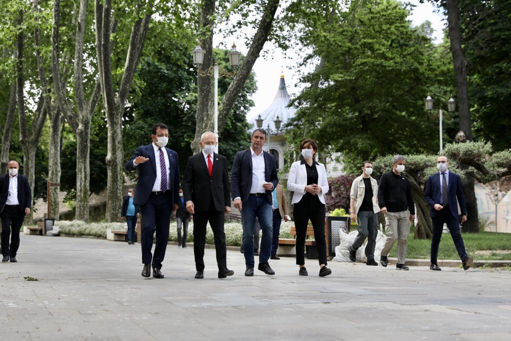 Cumhuriyet Halk Partisi (CHP) Genel Başkanı Kemal Kılıçdaroğlu, CHP İstanbul İl Başkanı Canan Kaftancıoğlu ve İstanbul Büyükşehir Belediye (İBB) Başkanı Ekrem İmamoğlu, sokağa çıkma yasağı nedeniyle tarihinin en boş zamanlarını yaşayan Tarihi Yarımada’da İstanbul turu yaptı.