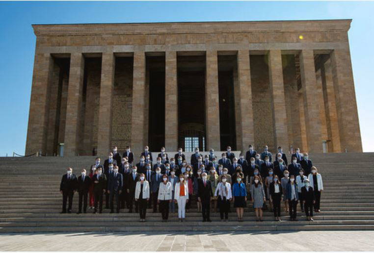 Heyet, CHP'nin İkinci Genel Başkanı İsmet İnönü'nün kabrinin bulunduğu alana da geçti. CHP Lideri’nin buraya çelenk bırakmasının ardından saygı duruşunda bulunuldu.