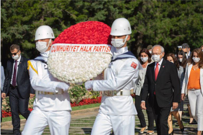 Basına kapalı gerçekleşen programda, Kılıçdaoğlu, Mustafa Kemal Atatürk'ün mozolesine çelenk bıraktı. Kılıçdaroğlu ardından Misak-ı Milli Kulesi'ne geçerek, Anıtkabir Özel Defteri'ni imzaladı. CHP'li heyet Anıtkabir önünde fotoğraf çektirdikten sonra ayrıldı.
